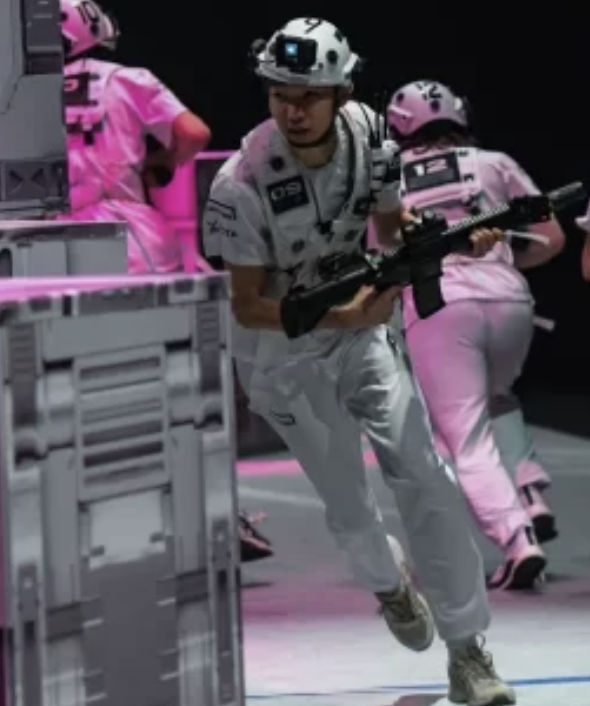 Primeiro, os atletas jogam o shooter no PC e depois continuam a batalha no Laser Tag.